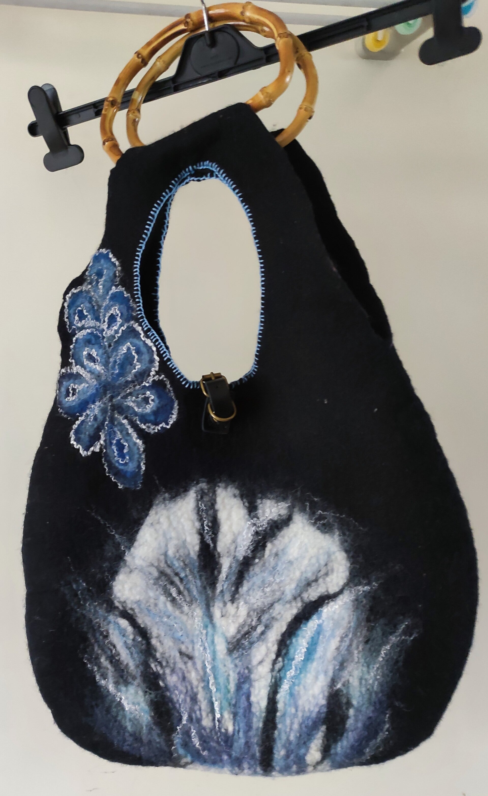 Deze handgemaakte vilten shopper is met merinowol gevilt. De tas heeft bamboe handvaten en een leren sluiting met gesp en magneet. Handig als je snel wat boodschapjes moet doen, of om mee te nemen naar je werk.