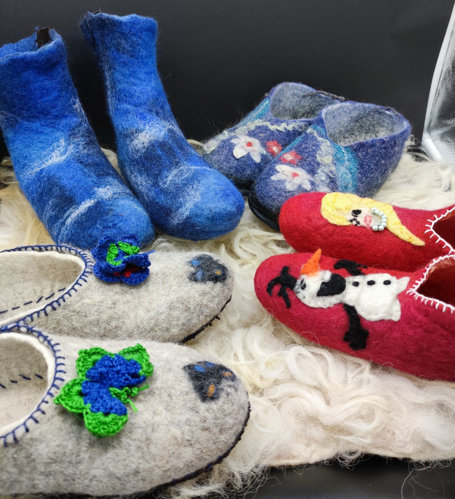 Verschillende gevilte sloffen als voorbeeld.