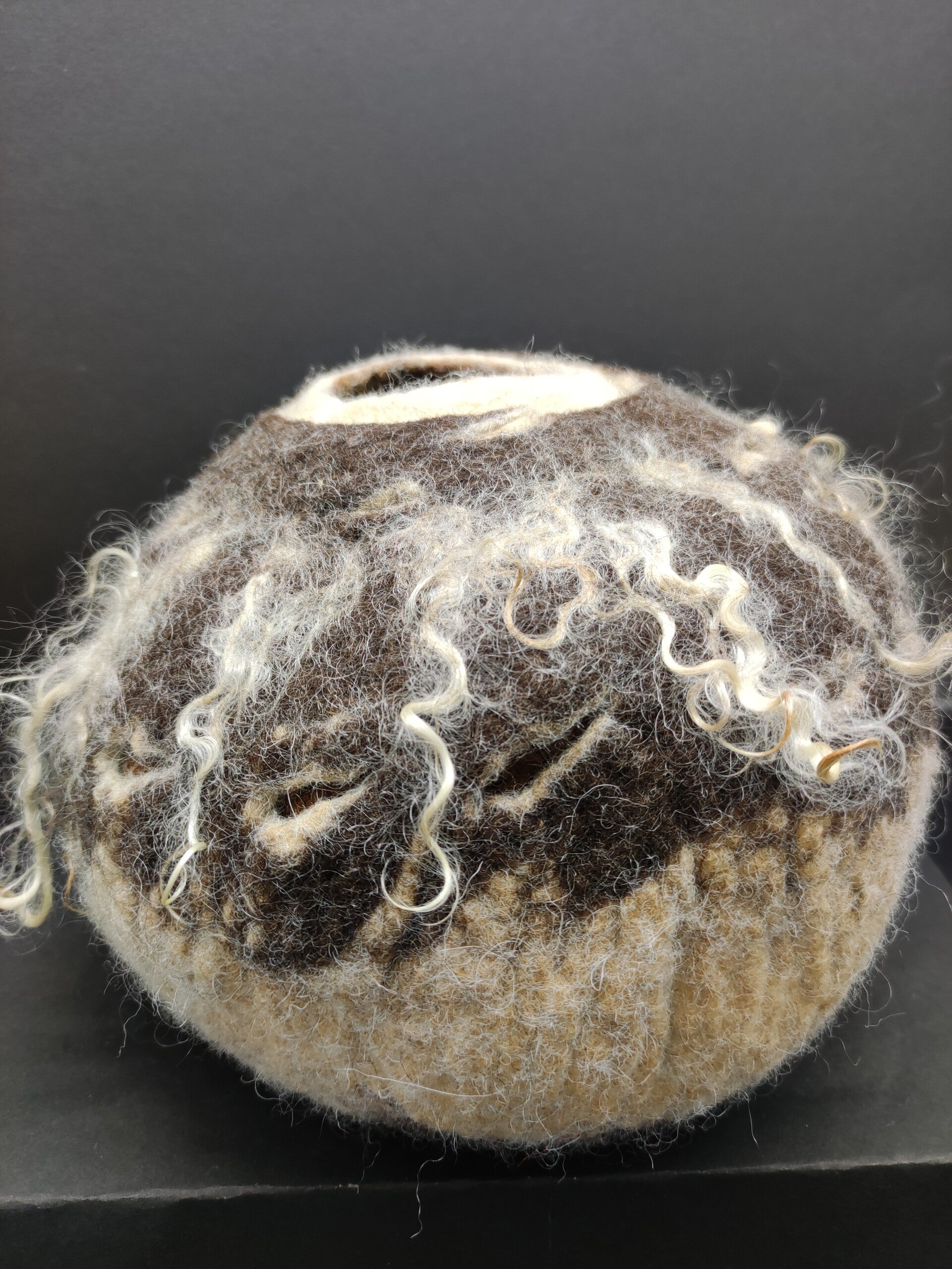 Vilten bol vaas. Gevild van Manx Loagham wol en krullen van mohair.